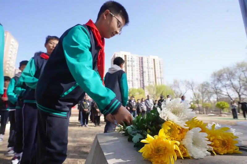 4月1日,朝阳区平房乡联合北京拔萃双语学校初中部学生、中国人民解放军总医院第七医学中心开展以“清明祭英烈 青春缅忠魂”为主题的清明节祭扫活动。来自平房乡团委、晴悦家园社区党委、青年北路社区党委、石各庄村党委、拔萃学校和共建单位的100余名党员、团员、居民群众、师生代表参与祭扫活动。
