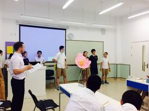 而在中文展示部分,同学们以辩论赛的特殊形式展现了自己的口才和沟通能力。辩论赛主持人暨语文老师李老师首先介绍了辩论双方、到场的评委和来参观学习的留学生们。此次辩论正反方的观点为“吃亏是福”和“吃亏不是福”。紧接着,双方便分别呐喊出了本队的胜利宣言。接下来,正反方的一辩手分别就自己的辩题进行了立论陈词,然后进行了激烈的攻辩和自由辩;双方的二辩手和三辩手都充分利用了自己准备到的材料,有理有据、慷慨激昂,博得了现场观众的阵阵掌声和欢笑声;最后,双方的四辩手对各自观点进行了条理清晰的总结。不论胜败与否,在整个过程中,同学们向家长和老师们展示出了与平时截然不同、但充满魅力的自己,令人刮目相看。