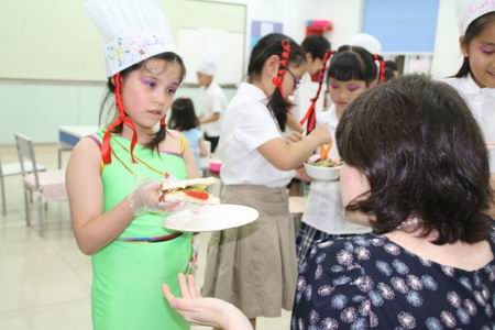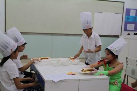 在整个英语课堂中,同学们个个发挥出色,时而与外教轻松幽默地流利对答、时而落落大方地进行自信的演讲、时而认真投入地用心表演……尤其值得一提的是双证二(1)班的英文短剧Three little pigs,以及双证三年级的英文美食介绍与现场制作活动,精彩的剧情、新颖的形式、流利的语言、纯正的发音和栩栩如生的表演让整个课堂高潮迭起,精彩纷呈,赢得了家长们的阵阵掌声,凸显了国际部英语教学的学科特色,形成了浓厚的校园英语文化氛围。