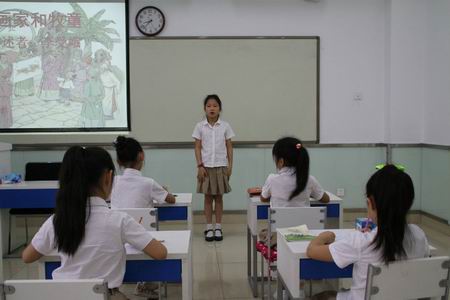 走进一年级,同学们个个端坐如钟,一张张可爱的笑脸如夏日里一朵朵绽放的玫瑰,一双双炯炯有神的眼睛聚精会神地看着老师,等待着园丁的点拨。老师和风细雨般的声音带领大家走进了《棉花姑娘》的世界,细细品味了棉花姑娘的痛苦和喜悦,不仅拓展了知识面,还学会了举一反三。一言一语、一举手一投足,童真稚嫩的声音、精彩到位的角色表演,孩子们在课堂中的精彩表现更是在每个家长心中都留下了深深烙印。二、三年级的课堂更是异彩纷呈。一篇《画风》引发了二年级同学们的积极思考和热烈讨论。每位同学在小组成员的协助下都能准确的得到结论,妙趣横生的答案和天马行空的想象力让家长们也佩服不已。最精彩的要数三年级同学们的演讲了。有的娓娓道来,有的慷慨激昂,有的则深情款款;抑扬顿挫的声音,一会儿带着观众们陷入沉思,一会儿又引得大家啧啧称赞、拍手叫妙。孩子们发自肺腑的保护地球母亲的呼吁,更是感染了每一个人,在活动结束后还让家长们回味良久……
