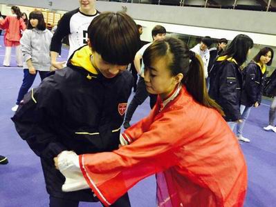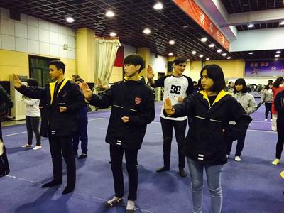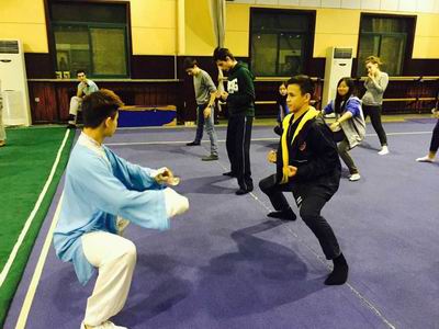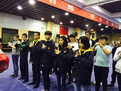 2015年10月28日,天朗气清,国际汉语部师生一起参观了中国功夫明星之家---什刹海体校。北京市什刹海体育运动学校始建于1958年,位于北京市中心的什刹海西岸,建校以来为国家培养了3000多名优秀体育人才,他们中的许多人走上了奥运会、世界锦标赛、世界杯冠军的领奖台,迄今已有38人获得世界冠军,其中有7位为奥运会冠军。到达什刹海体校之前,同学们已经观看了该校的视频简介;身临其境之后,师生们逐一参加了该校的跆拳道、拳击、羽毛球、武术、散打、乒乓球等训练场,亲身体验了运动员们的日常训练。在参观武术训练场的同时,同学们还有幸得到了全国太极武术冠军的指导,学习了一些简单的功夫架势,了解到了中国武术精神中所倡导的坚韧。
