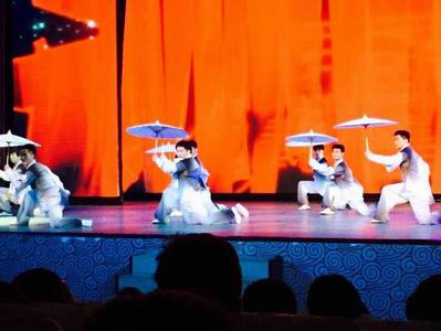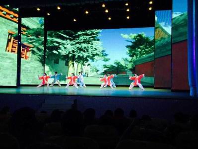 参观完训练场并切身学习了一些武术招式后,兴致勃勃的同学们还一起观赏了什刹海体育学校的著名剧目——《功夫熊猫》。该剧大概梗概为一对活泼可爱的熊猫情侣"爱龙"(喜爱功夫巨星李小龙和成龙)和"爱杰"(喜爱功夫巨星李连杰),历经重重险阻,去寻觅他们心中的偶像——"功夫熊猫"。他们走遍了大街小巷、名胜古迹、新老地标,亲眼目睹与切身感受了现代北京浓郁的风土人情、文化民俗、和谐自然、乐观健康、热情好客的氛围。他们遇到了螳螂、虎、鹤、猴、蛇等众多武林高手,经过拜师习武的各种经历和体验,切深感受到了中国功夫的博大精深,并收获了美好、甜蜜的爱情。这一剧目是由功夫巨星李连杰的师兄、弟,电影《少林寺》的编、导、演和中国著名导演赵安率北京奥运会的制作团队联袂倾情打造的,由众多世界武术冠军加盟;将中国功夫同音乐、舞蹈、京剧、杂技、民俗有机的融合在一起,运用高科技新手段塑造变化多端、绚丽夺目的舞台效果。同学们在观演过程中既觉得惊心动魄、又感到轻松欢乐;纷纷鼓掌叫好,连声赞叹。