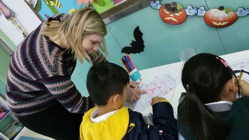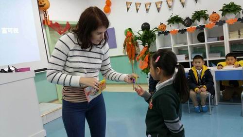 外教老师们也特意给孩子们上了一堂有关万圣节主题的课,介绍到了万圣节的来源、时间、内涵、意义等等;又教会了孩子们一些万圣节的歌曲,还跟孩子们一起游戏、比赛;寓教于乐、其乐融融。课间时分,孩子们还分成了小组,到各个教师办公室里高呼“Trick or treat”,收集从老师们那里得来的甜甜的糖果和满满的爱意……
