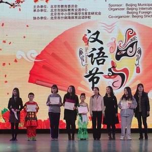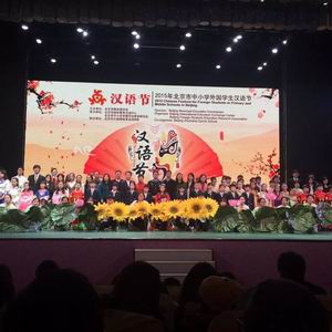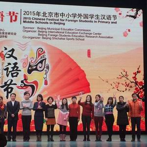 热烈祝贺我校在由北京市教育委员会指导、北京市国际教育交流中心主办的“2015年北京市中小学外国学生汉语节”活动中荣获“优秀组织奖”!我校选送的节目《古诗词荟萃》荣获“一等奖”,并在全市二十余所名校选送的38个节目中脱颖而出、作为优秀作品展演中的开场节目!