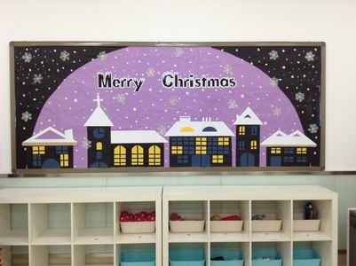 三年级的教室里,黑色与紫色搭配出的是静谧、白色与黄色调和出的是温馨,让人感受到浓郁的圣诞雪夜氛围。