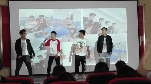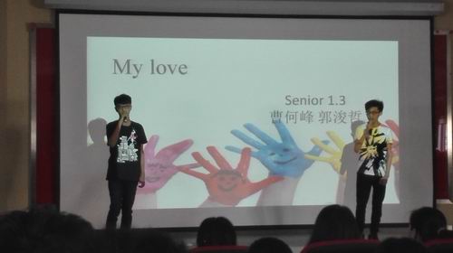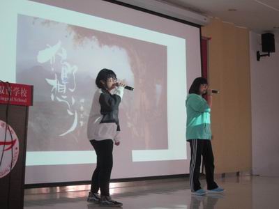 13点45分,主持人激情的“Let’s cheer up and sing”宣告正式拉开了比赛的序幕。选手们深情献唱,个个声情并茂。轻快舒缓的“Night changes”,四个男孩为我们深情展现,不管世事怎样变迁,始终有我在你身边。一首英式摇滚“Glad you came”为我们带来了仿如清爽夏日的轻松感觉,也表达了学生们对他们喜爱的老师的热烈欢迎。SACE班的韩国学生鞠涛娟带来的“Rolling in the deep”,独特的音调,来自灵魂深处的呐喊,将整个比赛推向了高潮。随后三个男孩和一个女孩共同演唱了一首加拿大流行歌曲“Boy friend”,他们用轻快的旋律,活泼的舞台表演,淋漓尽致的展现出了国际部学生的独特魅力。“Our song”,用歌曲唱出了日常生活的点点滴滴,尹嘉璇同学将这首歌展现的唯美抒情,将整个英语歌曲大赛推向了另一个高潮……