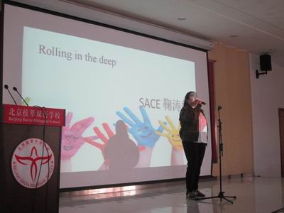4月1日下午1点半,国际高中部全体师生齐聚学校报告厅,举行了首届英文歌曲比赛。本次比赛邀请了外教Nathan、Jacinta,中教刘蕊、杨翠、张美惠及陈静老师担任评委。高一、高二和高三SACE 班的学生踊跃参加,他们带着精心准备的十首歌曲,共同为观众们献上一场激情饱满的英语歌曲盛宴。
