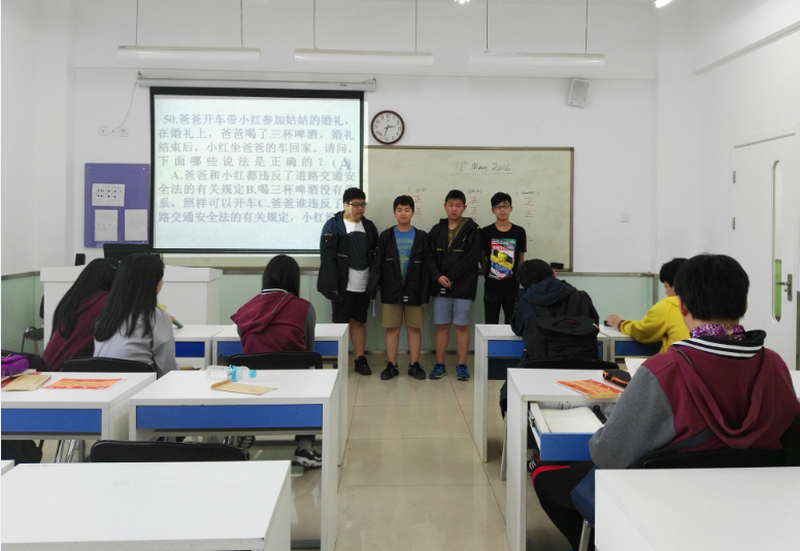 为了进一步贯彻落实学部的“安全宣传教育月”活动,促使同学们树立安全思想,加强安全防范意识,提高安全防范能力,掌握危急时避难求生的各种技能,5月13日拔萃双语学校英语初中部利用班会课的时间在教室进行了一场精彩的安全知识竞赛。