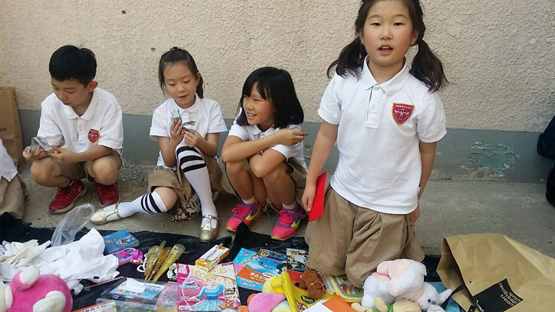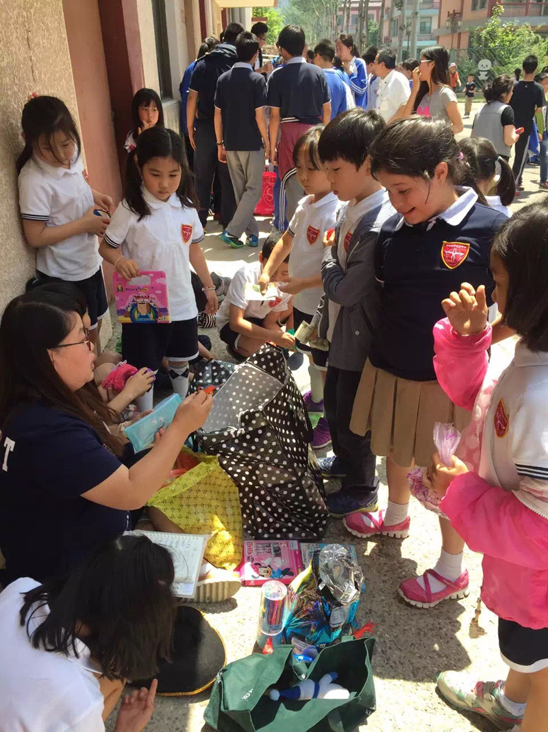 本次义卖同学们做足了准备。他们和老师们亲手制作了精美的海报,并把义卖的小物品按班级顺序摆在校园义卖街的两侧。在整个义卖的过程中“售货员们”有的笑容可掬,静待顾客的光顾;有的则大声吆喝,招揽顾客;还有的用起了大甩卖、买一赠一等销售技巧吸人眼球,整个中午同学们在摊位间忙得亦乐乎,着实辛苦。