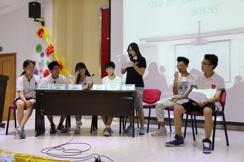 2016年6月22日晚6点15分,国高部高一和高二学生英语辩论赛在图书馆三楼报告厅隆重举行。此次辩论赛由蒋校长亲临指导,同时有幸邀请到了外教Nathan、Thoko老师,中教刘蕊、杨翠老师担任评委。