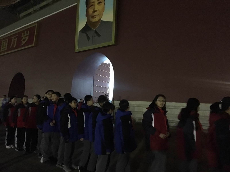 近日,我校国际初中一年级的学生参加了一次令人激动又兴奋的天安门升旗仪式。凌晨两点二十分,同学们伴着月光来到了教学楼前集合,凌晨三点,启程前往天安门广场。