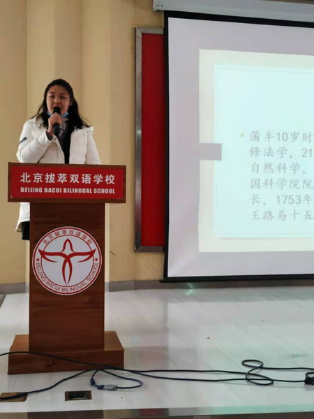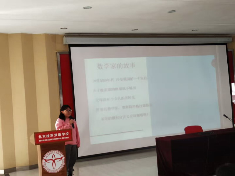 为了丰富学生课余生活,激发学生学习数学的兴趣,结合高段数学本学期课题活动,国际部小学双语实验课程部在12月3日举行了“数学名人故事”分享会演讲比赛。