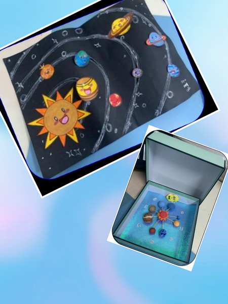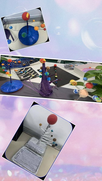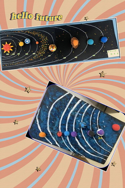 我们的太阳系有哪些行星组成?它们长什么样子?太阳系八大行星在什么位置,都有哪些特点?在科学月活动中,小学低段的孩子们通过与教师的交流和课下的探索活动,认识太阳系空间的奥秘——对金星、水星、木星、土星、地球、海王星、天王星的形状、位置和颜色做了详细而深入的探究,制作出一部部令人惊艳的模型作品: