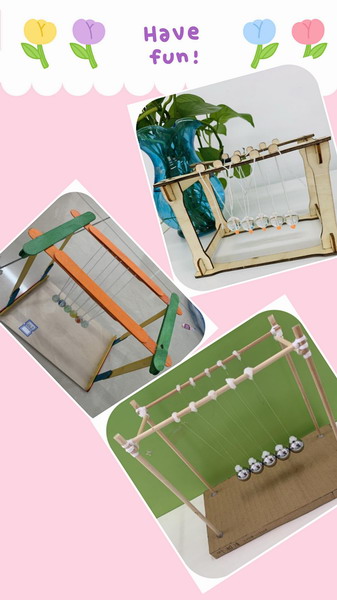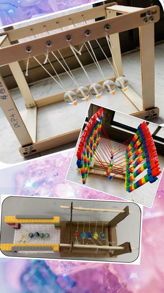 牛顿摆长什么样子?牛顿摆是永动机吗?它能一直不停的传递能量不停止吗?当学习枯燥无味的时候,做个牛顿摆解解压,增加乐趣吧!牛顿摆是一门既简单又深奥的学问。说它简单,是因为我们可以通过废物利用的方式制作,说它深奥,是因为它的背后有着复杂的物理学知识。牛顿摆的结构、废旧材料、摆绳的长度、摆锤的重量等都会影响牛顿摆摆动的时间。小学高段的孩子们不断探索,对牛顿摆的原理、稳定性等做了详细而深入的研究;通过探究活动,每位选手钻研琢磨、竭尽所能,一个个奇思妙想、形态各异的作品诞生了: