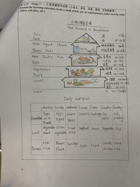 科学月活动中,双语部学生还进行了科学项目的探究活动。从确立目标、编写提纲、收集资料、获取数据、分析资料到汇报项目研究成果,孩子们的那股认真劲,还有在汇报成果时的别出心裁,确实是值得推崇的。有些同学的项目成果展示,不仅画出了复杂的消化系统和吸收系统,还为学校餐厅创作出了一周的科学健康食谱。更使我们值得骄傲的是部分同学能以中英文双语的方式呈现作品,流利的英语语言描述博得了所有听众的阵阵掌声。