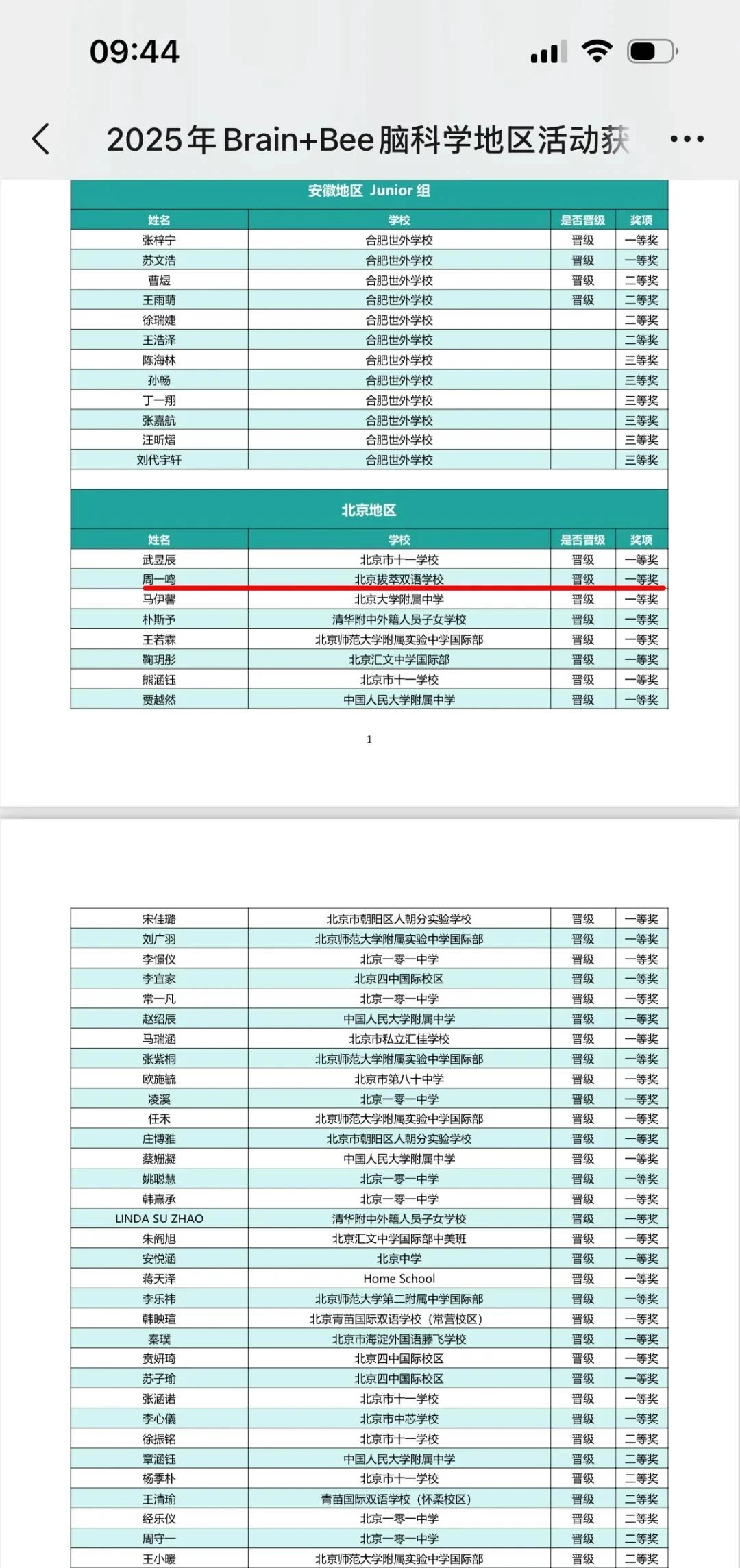 在刚刚落幕的2025年Brain Bee脑科学大赛全国赛中,我校国际部高一(1)班周一鸣同学表现优异,初赛阶段以北京赛区排名第二的佳绩顺利晋级全国赛,并在全国总决赛中凭借扎实的脑科学知识储备与中英双语思维优势,从570名选手中脱颖而出,成功斩获全国一等奖!这是我校在学科竞赛领域的又一重要突破,展现了拔萃学子的非凡实力!