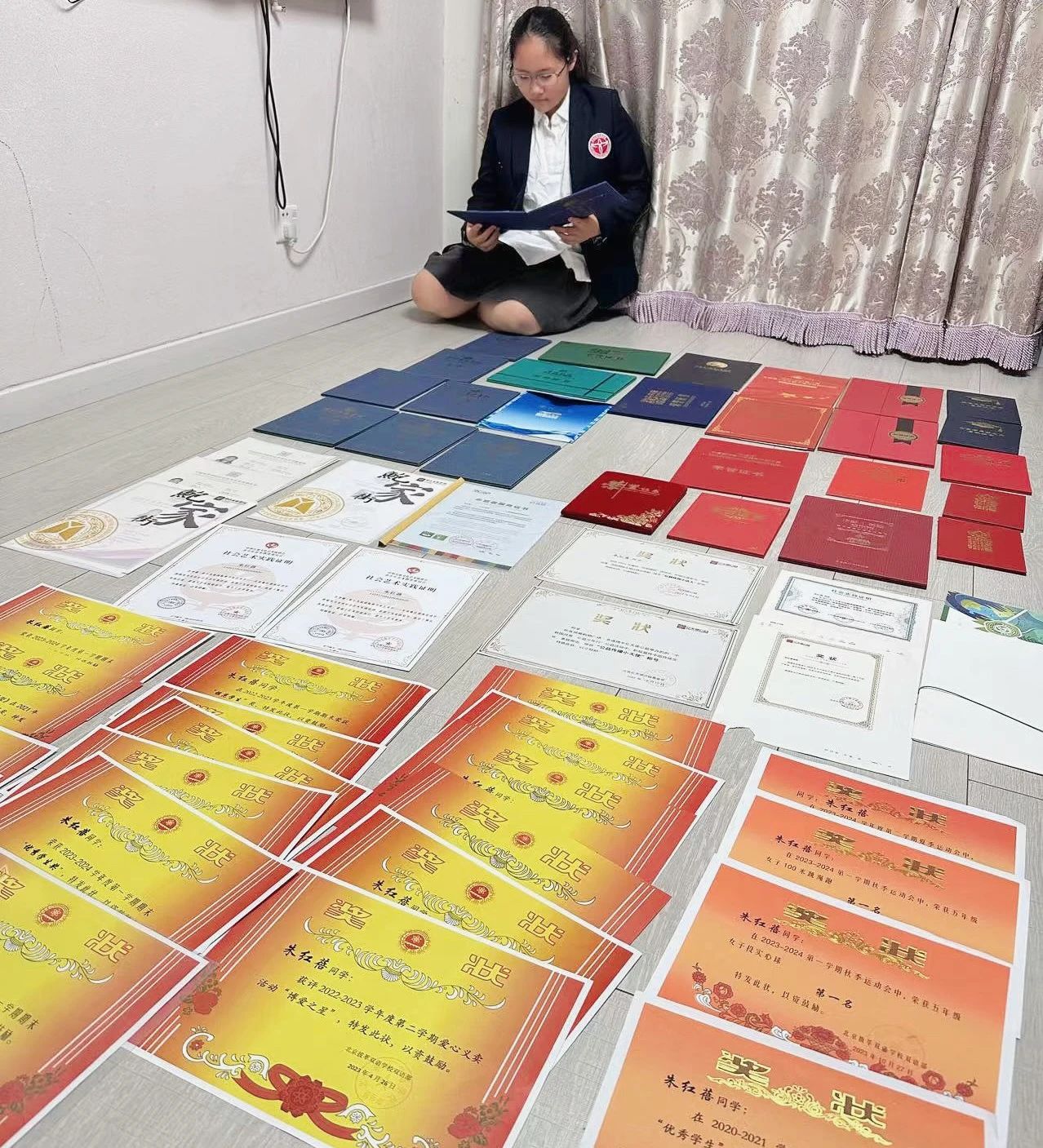 双语部六(2)班朱红蓓同学,是一位兼具天赋与勤勉的学生,她以独特的艺术视角与无穷创意展现艺术天赋。她的作品多次在校内外展出,在专业学习与艺术创作领域屡获佳绩,以下是近期获奖信息: