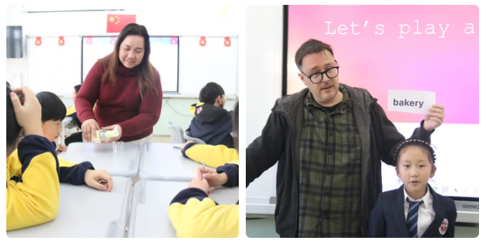 外籍教师们运用各种童趣、游戏化的教学方式点燃了孩子们的学习热情,让孩子们在情境化、游戏化的主题教学中思考、探究、表达。