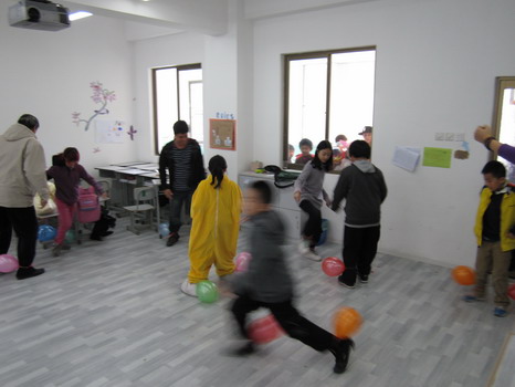 and not only pop the balloons tied on their teammate’s legs, but at the