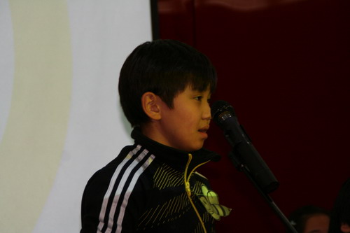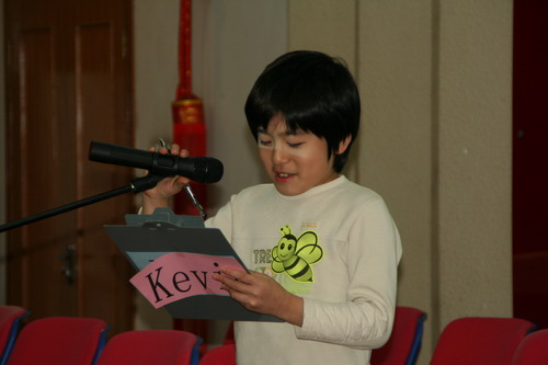 本届Spelling Bee比赛吸引了英语部众多中小学生参加。参赛选手们自10月份开始备赛,历经班级预赛才得以进入英语部决赛。本届大赛依次进行小学组和中学组比赛,各10名选手组成。最年轻的选手是小学组二年级的林可瑜,站在礼堂的舞台上,她自信地接受外籍考官的提问。其他小选手也不甘示弱,Alex不可多得的沉稳,Angela的激情四射,Bryan的机敏自信---纷纷把小学组比赛推向激动人心的高潮,观众席上异常安静,大家屏气凝神,紧张观赛,历经多轮角逐,最终Alex折得桂冠。