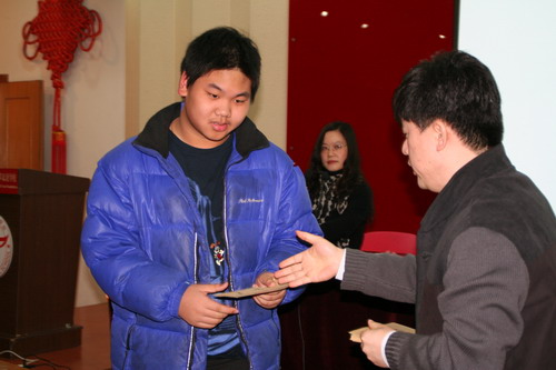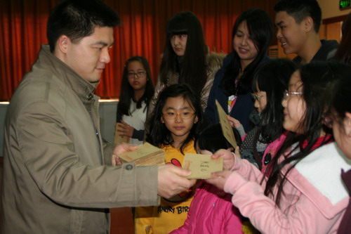 开学典礼上,蒋红霞副校长首先对国际部上个学期的各项工作做了总结。她的谆谆教导和亲切问候使学生们倍感温馨。随后,蒋校长宣读了获得上学期 “优秀奖”“进步奖”“鼓励奖”“全勤奖”及“HSK奖”和“博爱奖”的学生名单,颁发了奖状及奖金,使大家信心倍增。最后,开学典礼在热烈的掌声中画上了完美句号。