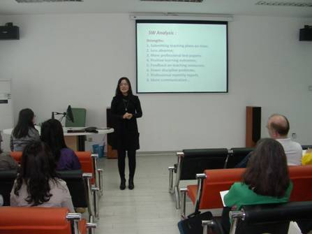 进而蒋校长重点分析了工作中存在的不足,要求外籍教师全面理解学校、家长对教学的总体要求,并时常与中方教师联络,互相沟通,及时解决教学过程中的问题;并且就中国学校的处事文化与习惯做法和外籍教师们做了分享。