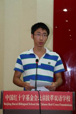 随后,国际高二A-level班的雷鸣同学,介绍了一些自己的学习经验和体会,也代表同学们表达了对学校为大家改善饮食和住宿服务工作的满意之情;接着,国际高一(2)班的徐扬同学,也代表新生表达了学校的喜爱之情 ---“有一种找到归宿的感觉”。