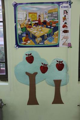 国际部每个年级的板报都别具特。依据学生的年龄特点,不同年级板报的主题和内容也不尽相同。比如:小学一、二年级用一整面墙来做涂鸦墙,孩子们凭借自己的想象,把心中最美的图画描绘了出来,内容充满了童真、童趣;而高年级的同学,则是充分利用网络资源,收集了丰富的资料,自己动手制作了精美的立体板报。