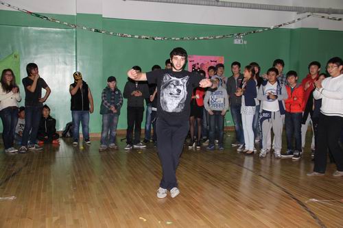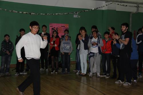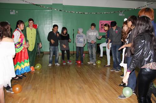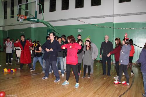 大概过了十多分钟,舞会便正式开始了,好多人随着音乐的节奏跳了起来,实在是热闹万分。同学们纷纷加入舞动的行列,绕着圈,又蹦又跳。虽后,外教还带领我们做了一些小游戏。