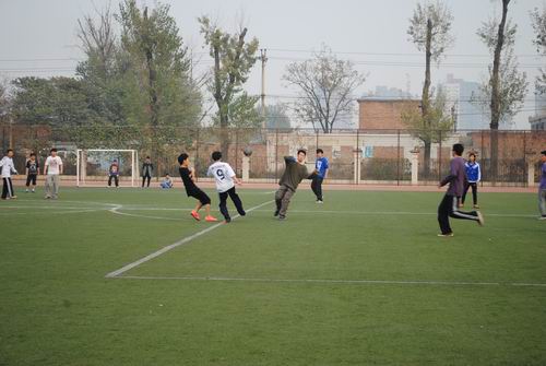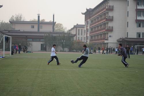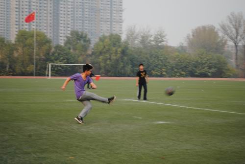11月2日,天气转凉,但这丝毫没有影响同学们对足球赛的高涨热情。下午第一节下课,队员们便匆忙来到绿茵场加紧训练。