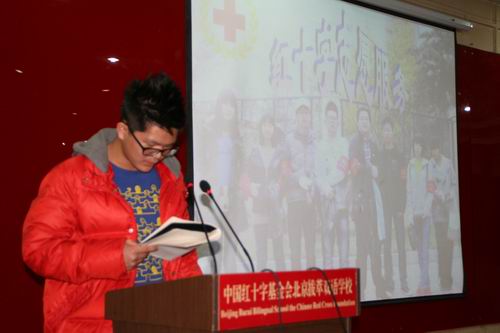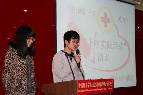 这次汇报是在大家正进行的红十字实践活动取得的成果的基础上进行的,也是对红十字月(11月)的一次总结。同学们按照高二A、高一A、高二(1)、高一(1)、高一(2)的顺序依次将开学以来的红十字实践活动做了汇报。