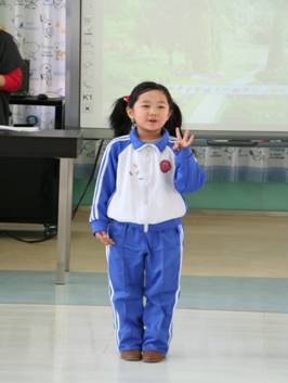 接下来是孩子们的英文自我介绍。12个宝贝用各自可爱的动作、甜美的微笑和流利的英语向父母展示了英语课的收获。他们把对英语和音乐的喜爱融进了歌声里,那纯净的童声感动了在场每个人的心。