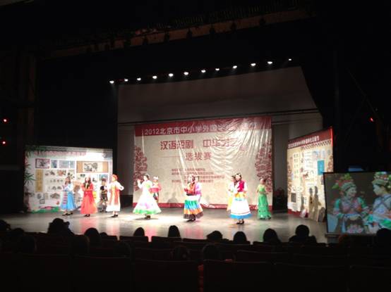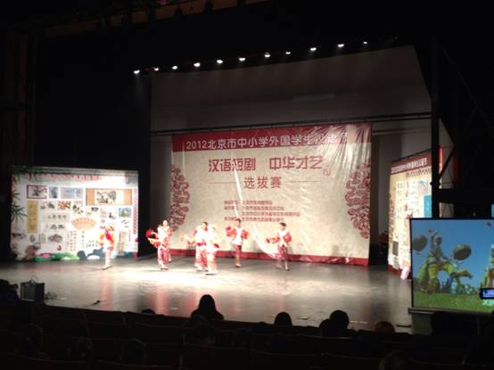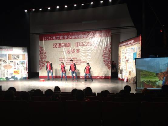 为了进一步激发外国中、小学生学习汉语的兴趣,加深他们对中国文化的了解,丰富北京市中小学留学生的学习生活,北京市国际教育交流中心举办了2012北京市中小学外国学生汉语节-汉语短剧、中华才艺选拔赛,2012年11月20日我校50名留学生在国际部老师的带领下在北京东宫影剧院参加了此次活动。