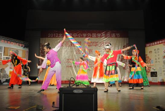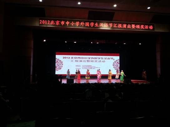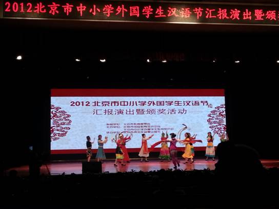 在此次活动中我校共有五位教师获得优秀辅导教师奖,我们的学校荣获优秀组织奖。其中的舞蹈《爱我中华》被邀请参加此次汉语节汇报演出暨颁奖活动的现场表演!
