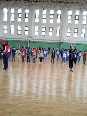 午饭过后,静悄悄的体育馆内一下子热闹起来了,国际部一至六年级的小学生们争先恐后地来到这里,充满期待地等候两位来自北京舞蹈学院的专业踢踏舞老师。原来,为了给学校的建校十周年庆典献上一份心意,从3月12日起,国际部一至六年级的学生于每周二中午开始练习踢踏舞,力将排练出一段规模宏大、震撼人心的踢踏舞表演,为十周年校庆献礼。