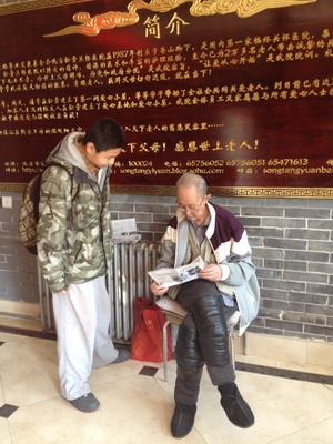 4月6日当天,高一(1)班红十字小组的成员们早早地就来到了“松堂临终关怀医院”。大家拿出准备好的蛋糕,为张大爷庆祝生日。唱完生日歌以后,大伙兴致勃勃、意犹未尽,又和张大爷一起唱了一些他所喜爱的老歌。张大爷拿出来一个小本子,告诉大家说这个本子是1992年开始珍藏的,里面全是手写的老歌歌词。张大爷像捧着个宝贝似的,把这个有着20多年历史的歌词本捧在手心里,跟大伙一起聊起了老歌,聊起了曾经的辉煌岁月。同学们听得津津有味,沉浸在老歌的魅力中。很多同学还纷纷表示要学习一下这些好听的、经久不衰的老歌, 并在下次活动的时候唱给张大爷和其他老人们听。
