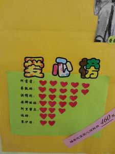 小学六年级以及初二、初三班的班级板报设计充分发挥了学生们的创造力和动手能力,学生们在学习中感受着劳动创造的喜悦。小学六年级的板报构思细致入微,板报中特别对向雅安地震捐款的同学们进行了表扬并为之设立了爱心榜,以红心代表爱心。设计形象生动,引人注目。