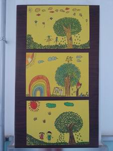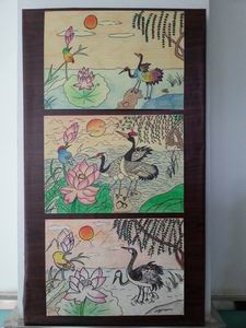 初三班的手工剪花和绘画作品更是令人叹为观止。板报以黑色为背景,上面用向日葵花将每位同学的月考成绩巧妙的镶嵌进去,底部是五颜六色的的花瓣,真映衬了那句古诗,“春色满园关不住”。走廊上的丹顶鹤画卷,线条流畅,栩栩如生,在荷花和阳光的映衬下,显得格外的耀眼。