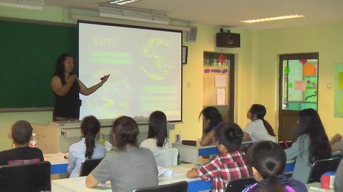 On the 31st May 2013, three expatriate teachers, Mrs. Wallace, Miss Robledo and Miss Stone taught Math, Science and English demonstration lessons. Mrs. Wallace taught Primary 5 students about whole numbers, Miss Robledo taught Primary 6 students about the Sun and the Solar System, while Miss Stone and the Primary 4 students talked about “A Visit to the Doctor”.