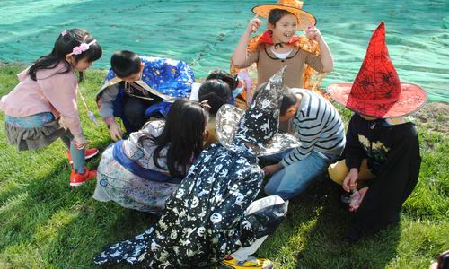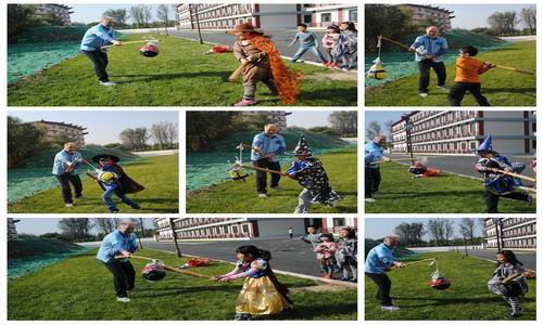 孩子们兴高采烈地穿上节日盛装,打扮成自己喜欢的卡通或故事人物,宛如一个个坠入凡间的精灵。看!哈利波特挥舞着魔法棒正在与加勒比海盗搏斗;小巫师骑着扫把给大家带来了缤纷甜美的糖果;美丽的白雪公主微笑着和小伙伴们又唱又跳,双证班的音乐精灵们穿着金光闪闪的衣服在阳光下翩翩起舞……