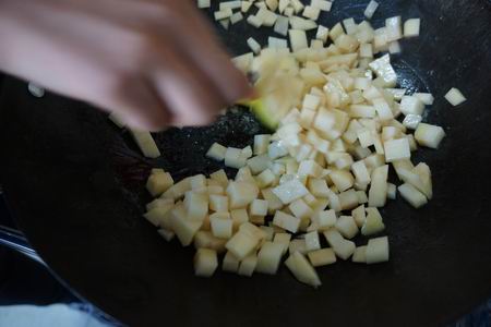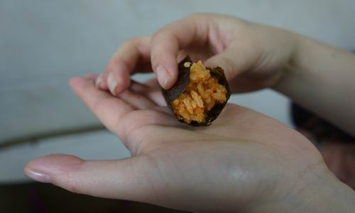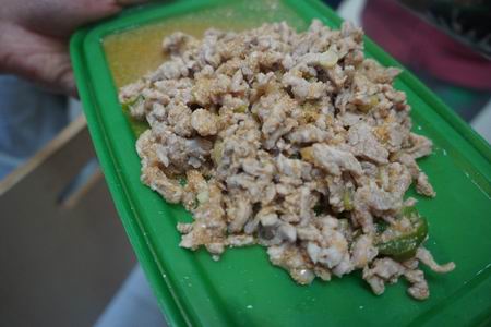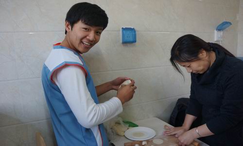 分完场地,大家很快就进入了状态。有的组内部分工井井有条,有的已经热火朝天地忙活起来。最快上场的是中国的饺子,比赛一开始,队长李赫男就把猪肉馅儿、牛肉馅儿和已经活好的饺子面拿出来了。速度之快、准备之完善让在场的所有人惊叹不已。于是大家纷纷找到自己的位置和任务,迅速投入“战斗”。一小会儿工夫,厨房里便飘出了诱人的香味儿……
