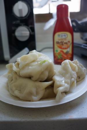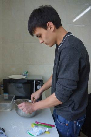 充满期望的同学们早已垂涎三尺跃跃欲试;香味飘到哪儿,大家就聚集在哪儿,还不等出锅,就有人迫不及待地尝试了。大家不停地交流着感触和收获:一楼的西式巧克力榛子酱煎饼味道不错,二楼马哲瀚的饺子包得相当可爱;一楼的迪玛吃得最多,二楼的煮年糕还有吗?一楼的煎鸡蛋搭配二楼的年糕汁儿味道没得说……几乎每一道美食都是刚出锅就被“扫荡”一空;没有品尝到的同学只能眼巴巴地等待下一锅。每位同学都激动万分,自己做出的菜代表着本民族的味道,能够被大家认可是件相当高兴的事情,就算自己少吃甚至不吃,也要拿给其他人分享一下来自家乡的美味。