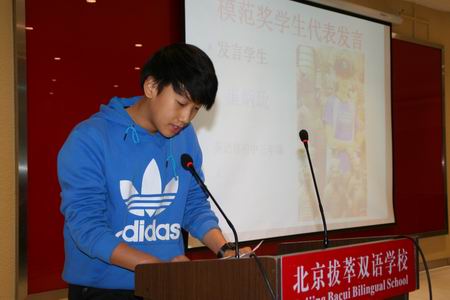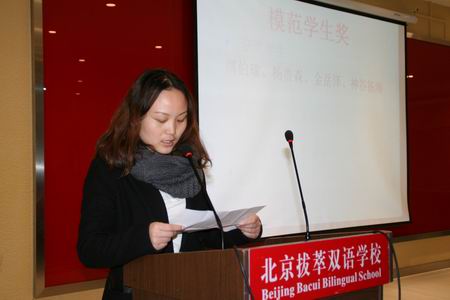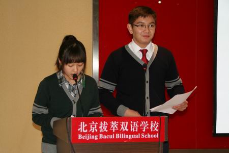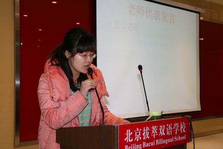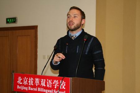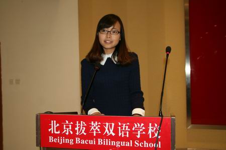 I have been asked to speak to you today to represent the international staff of Bacui School. I have only been in Bacui, and Beijing, for 3 months now and I have to say I have really appreciated the warm welcome I have had. I have moved around a lot in my short life and I know how difficult new starts can be; it is always made easier when surrounded by positivity, so thank you.