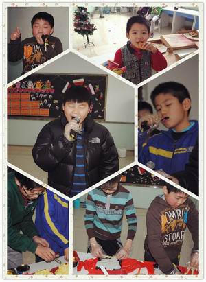 12月25日下午,国际英语部小学以班级为单位开展了别开生面的圣诞主题活动。各班级在师生共同装扮的圣诞板报和圣诞树下,节日的气氛愈加浓郁。孩子们纷纷表演了自己准备已久的节目。快看,小一、小二班和双证2年级的学生正在劲歌热舞呢;双1(1)的学生正在班主任老师的带领下丢手绢呢;小三班的学生在和老师一起玩“萝卜蹲”的游戏呢!