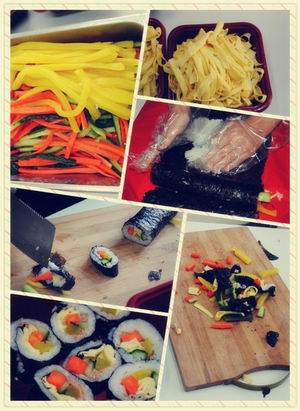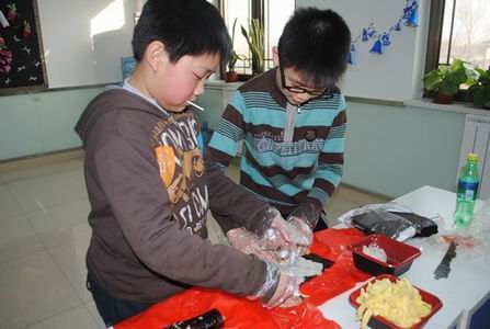 看着同学们做出来的紫菜包饭,是不是很诱人呢?通过这次圣诞节的班级活动,同学们学会了合作,学会了与人分享,更加深刻地理解了“感恩”的含义!