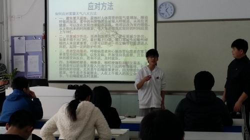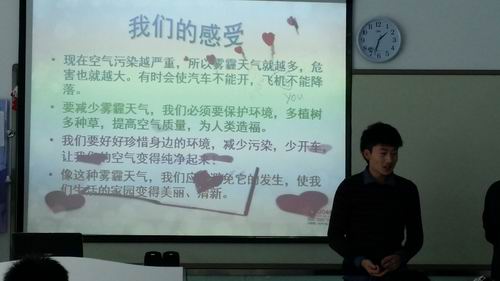 高一(1)班的班会以“雾霾来了怎么办”为主题,旨在增强同学们关注社会热点的能力,培养同学们的社会和公民意识。班会课上,班主任充分调动学生的积极性,通过图片和视频让大家认识到雾霾的成因及危害;让同学们畅谈自己对雾霾的认识,包括雾霾的形成、雾霾对身体的伤害、雾霾天如何确保交通安全、如何做好自身防护等等。大家热烈讨论,踊跃发言。讨论结束后,班主任做出了总结,提醒大家在严重雾霾天应尽量减少户外活动,严格遵守交通规则,多喝水、多吃蔬果,增强自身免疫力,保持乐观心态。班主任特别指出,同学们要增强责任意识,从我做起,从小事做起,爱护环境。