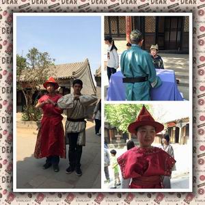 下午,同学们利用影视城里的场景、道具和服装,呈上了一出出自编、自导、自演的精彩话剧。《晏子使楚》、《荆轲刺秦》、《疆场送别》、《戏说白娘子》……同学们充分发挥自己的想象力和创造力,尽情施展个人的才华与魅力,剧本有新意、表演有特色、思想有深度。台上的演出让台下的观众掌声、笑声、喝彩声不断;还吸引了其他游客纷纷驻足、观赏品味,并询问这些“新戏”什么时候上映!