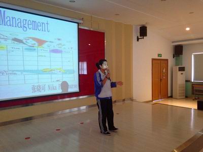 本次比赛分为主题演讲、评委问答和习语知识三个环节,从多方面测评选手的综合水平。选手们选择的也都是与生活息息相关的话题,例如高一A班黄泮芹的“Global Warming“和预科班张晓可的”Time Management“等。随着一号选手李琦的上场,赛场气氛随即热烈了起来,她也带来了激情洋溢的演讲。参赛选手们一个个气定神闲,畅谈自己的观点,和评委间的流利互动中透着自信。比赛慢慢进入白热化阶段,选手们昂扬的热情和敏捷的思维都在这三个环节中得到淋漓尽致的展现。经过长达两个小时的激战,有10名选手脱颖而出,将代表各自的班级参加6月份的决赛。