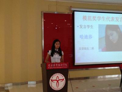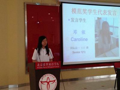 大会总结了开学至今国际部学生从学习到生活等方面的表现情况;公布了“模范奖”、“优秀奖”、“进步奖”、“博爱奖”等获奖学生名单,从各个方面对品行端正、成绩优异、积极进取、表现突出的学生进行了表彰。模范学生代表、教师代表,也分别在大会上做出了发言,总结本阶段的收获与成果,表达了对于同学们的殷切希望。