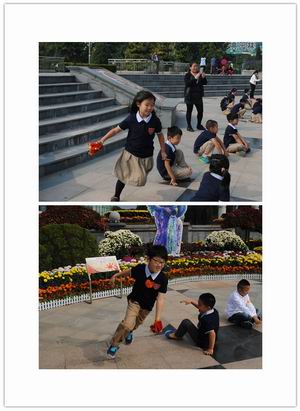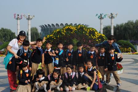 本次社会实践活动由国际部领导精心组织、周密计划、统一安排;教师们提前为外出活动作好了充分准备。29日上午八点半,师生们准时出发,乘着舒适的大巴奔赴目的地——世界花卉大观园。一路上,孩子们欢歌笑语,其乐无穷;不知不觉就到达了目的地。一下车,孩子们便被眼前的景象吸引了,整洁清新的世界花卉大观园令人心旷神怡。本次活动,上午首先进行了集体游戏比赛,孩子们踊跃参与,在丢手绢、背靠背接力、变换方式接力赛中积极表现,为所在团队争光添彩,获得了优异的名次和丰厚的奖品。中午,师生们席地而坐、悠闲野餐、畅聊趣事,十分温馨。下午,各班自由游园;漫步在林间小道,清新纯净的空气扑面而来,周围满是瑰丽奇绝的美景。蔬菜瓜果园、茗赏百花厅、热带植物馆、各国风情园等众多园林让人遐想连篇、赞叹不绝。